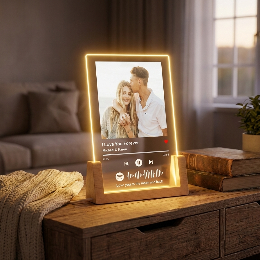 מנורת ה-Spotify המעוצבת שלנו היא לא סתם תמונה – היא חוויה. עם עיצוב נקי בהשראת נגן המוזיקה האהוב, היא משלבת את התמונה האישית שלכם, שם השיר, האמן, משפט לחריטה ואפילו קוד ספוטיפיי לסריקה מיידית של השיר.